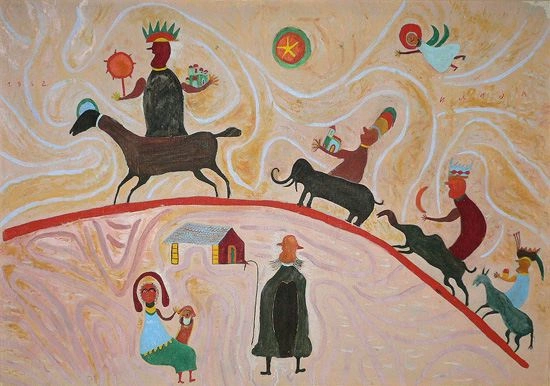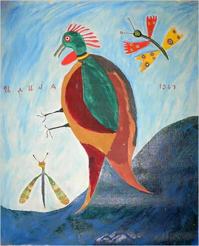 While most naive artists paint social, usually rural life and the environment around them with sublime simplicity, Ilija takes us in his inner world.