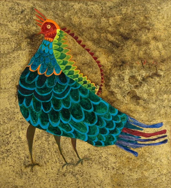 It represents his clash with human stupidity, duplicity and hypocrisy. Furthermore, there is a cycle with numerous paintings of animals, especially peacocks, but there are also unreal creatures with human bodies and animal heads, and reverse – with animal bodies and human heads.