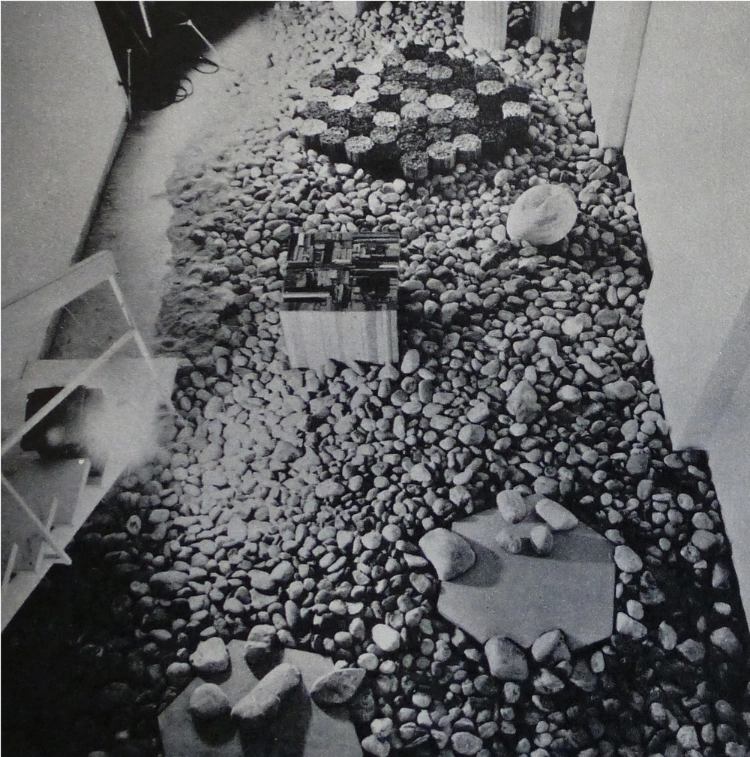| Giovanni Anselmo | Granite, lettuce, compass needles | Scultura che mangia — granite blocks squeezing a head of lettuce |