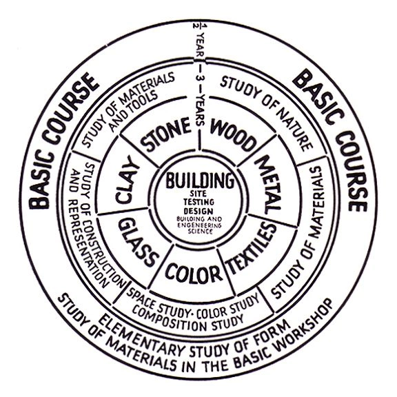 | Walter Gropius | 1919–1928 | Weimar, then Dessau | Unity of art and craft; later, industrial standardization | Dessau campus design; preliminary course curriculum |