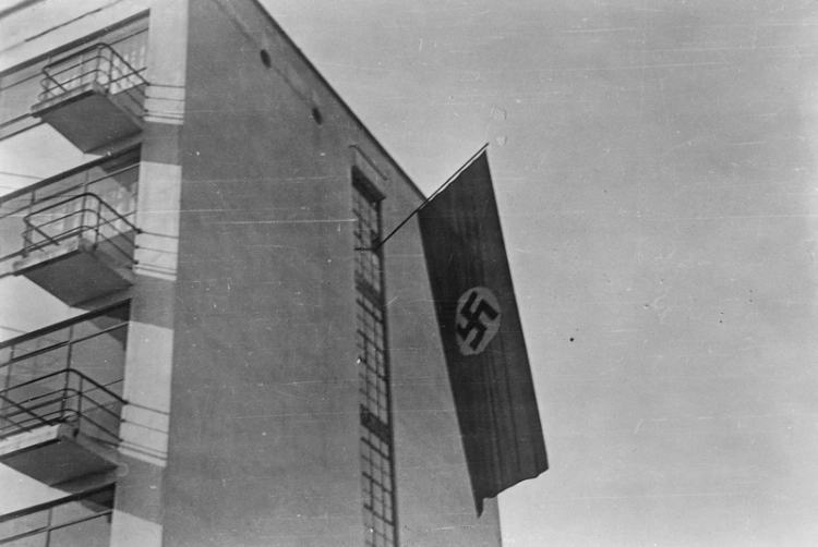 The school faced escalating political pressure from the Nazi regime, which viewed its internationalist outlook, abstract aesthetic, and leftist associations as culturally degenerate. After being forced out of Dessau by the local Nazi government, Mies van der Rohe relocated the school to a disused telephone factory in Berlin, but mounting harassment from the Gestapo made continued operation untenable, and the faculty voted to dissolve the institution.