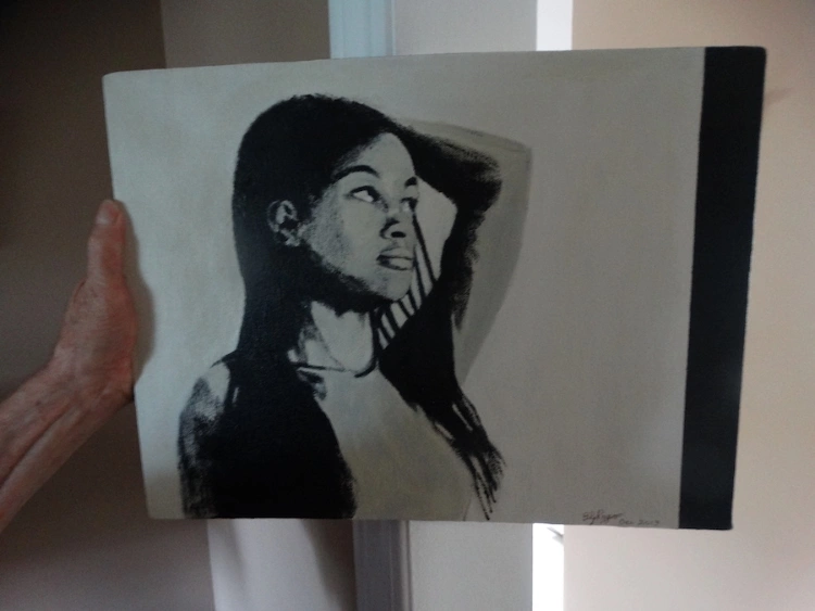 Here is a portrait he did of his daughter, which, again, shows that he has a discerning eye in terms of what he wants to say about a particular subject. This one is not for sale, as it was given as a gift.