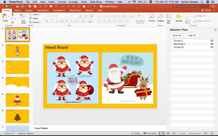 Carlos: Yeah! So this is the mood or idea board for this particular project. The song will be “Rudolph the Red-Nosed Reindeer” – a Christmas classic.