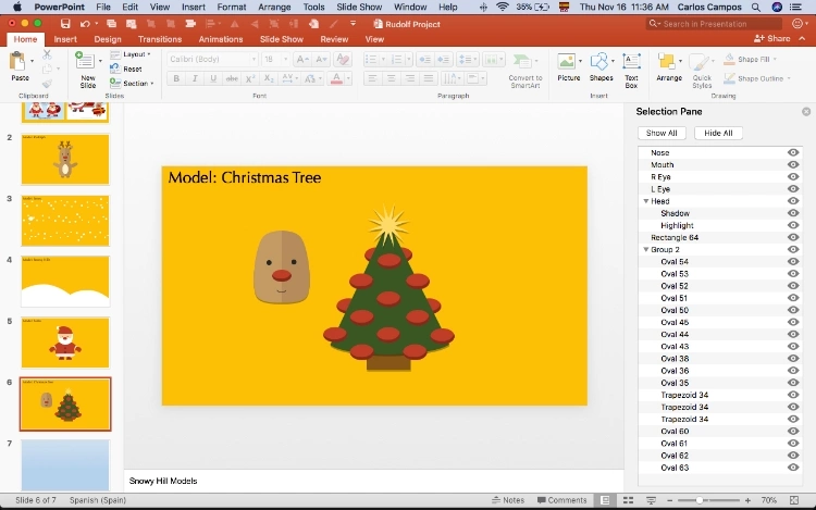 Carlos: Yes. So far, it’s all on PowerPoint. And for the tree, I wanted it to have some cool, fun decorations to avoid it from looking too traditional.