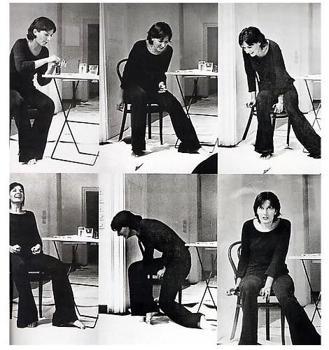 This piece is the first of the five performances in The Rhythm Series, in which she explored the limits of her body and consciousness.