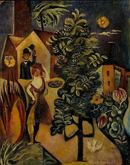 His favorite themes were fantasy and dreams, and he adopted an ironic style that juxtaposed grotesque elements alongside Cubist and Expressionist motifs.