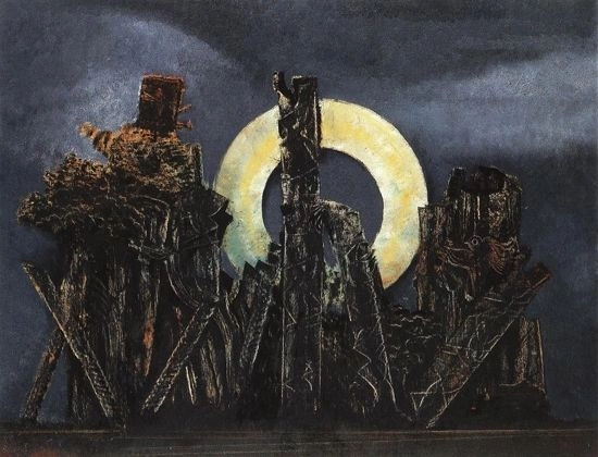 Arp’s and Ernst’s attempts to reach “beyond painting” – Arp with his low, painted and machine-cut reliefs, and Ernst with his collages – don’t represent an attempt of anti-art, as much as a response to feeling that the pre-war art was too hermetic and aesthetic.